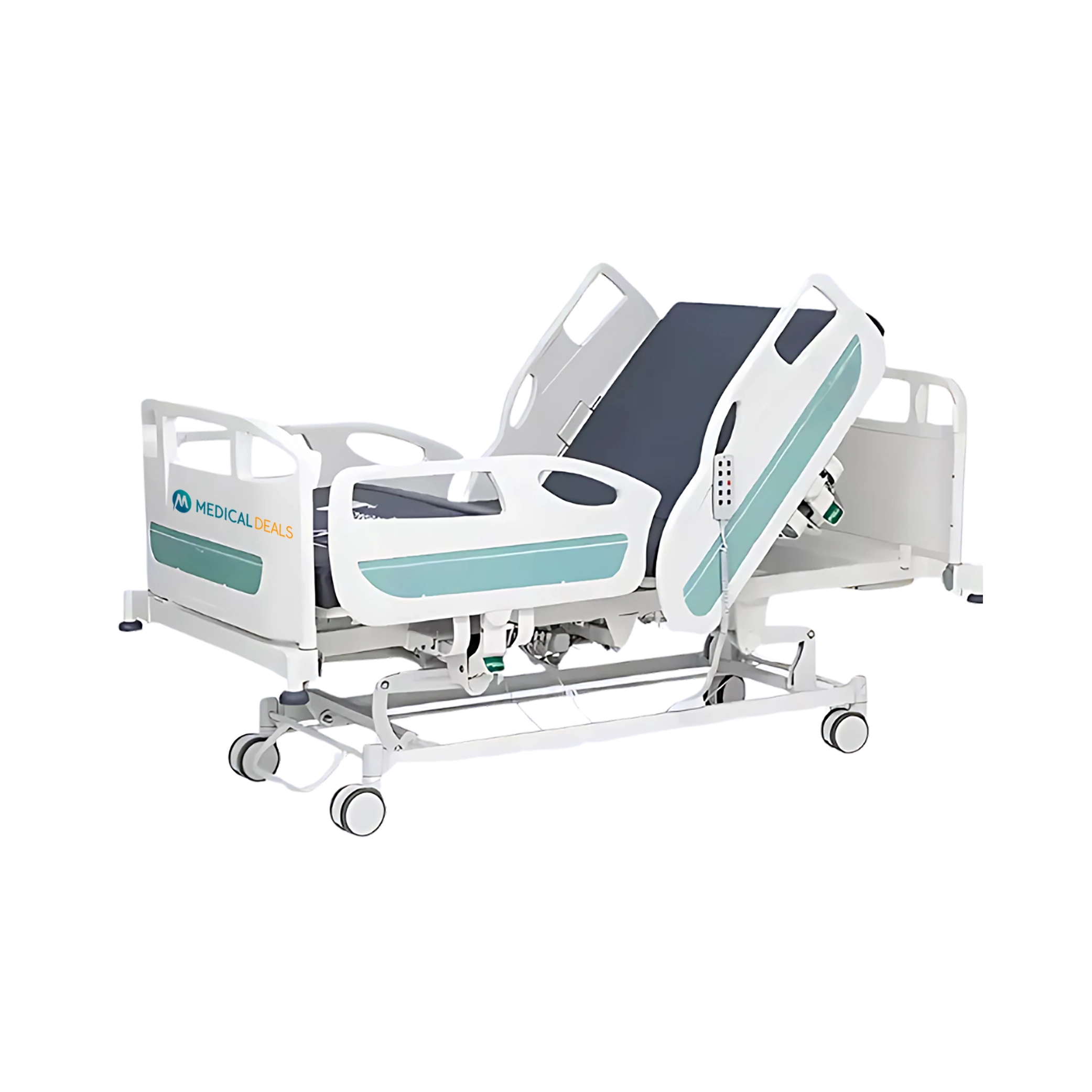 MedicalDeals Electric Hospital Bed's high-strength steel or aluminum frame ensures durability and stability, supporting a range of patient weights. The mattress platform is often segmented to provide optimal support and accommodate various patient positions. Side rails are included for patient safety and can be easily raised or lowered. Their easy-to-clean surfaces and materials help maintain high hygiene standards. Our Electric hospital beds feature lockable caster wheels for easy mobility and secure placement.