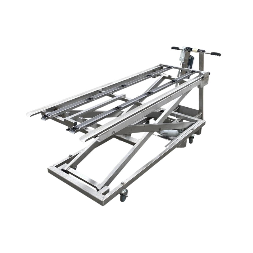 Electric Mortuary Trolley MD-EMT-1001 provides secure, dignified transport of deceased individuals in mortuary settings, with a scissors lift mechanism, adjustable height, and smooth-rolling medical-grade wheels for safe and efficient transfers.