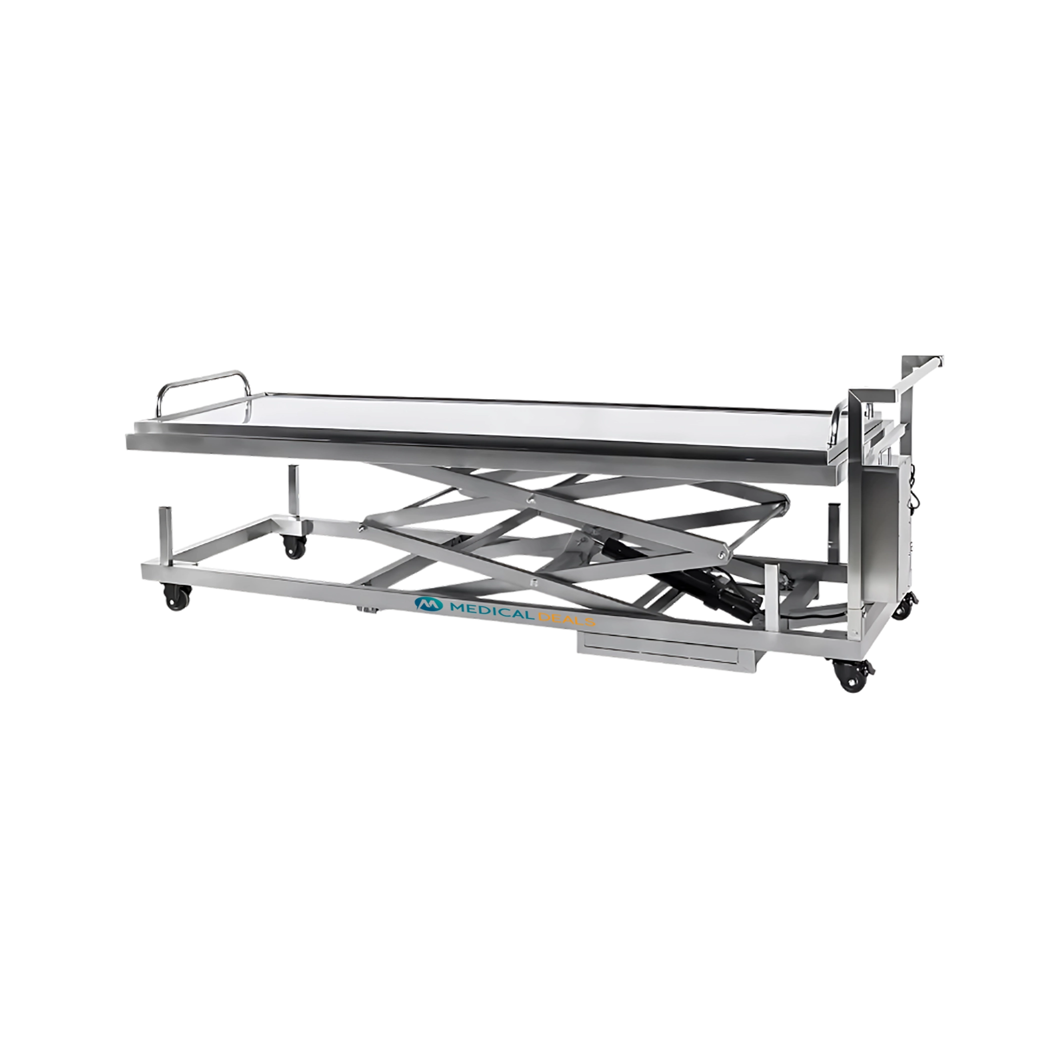 Medical Deals Electric Mortuary Trolley incorporates an advanced electric motor system that delivers smooth, controlled lifting and lowering actions with unparalleled precision. The incorporation of adjustable slings offers a customizable fit for patients, ensuring comfort and safety. Our product not only streamlines patient handling but also exemplifies a commitment to excellence in healthcare technology.