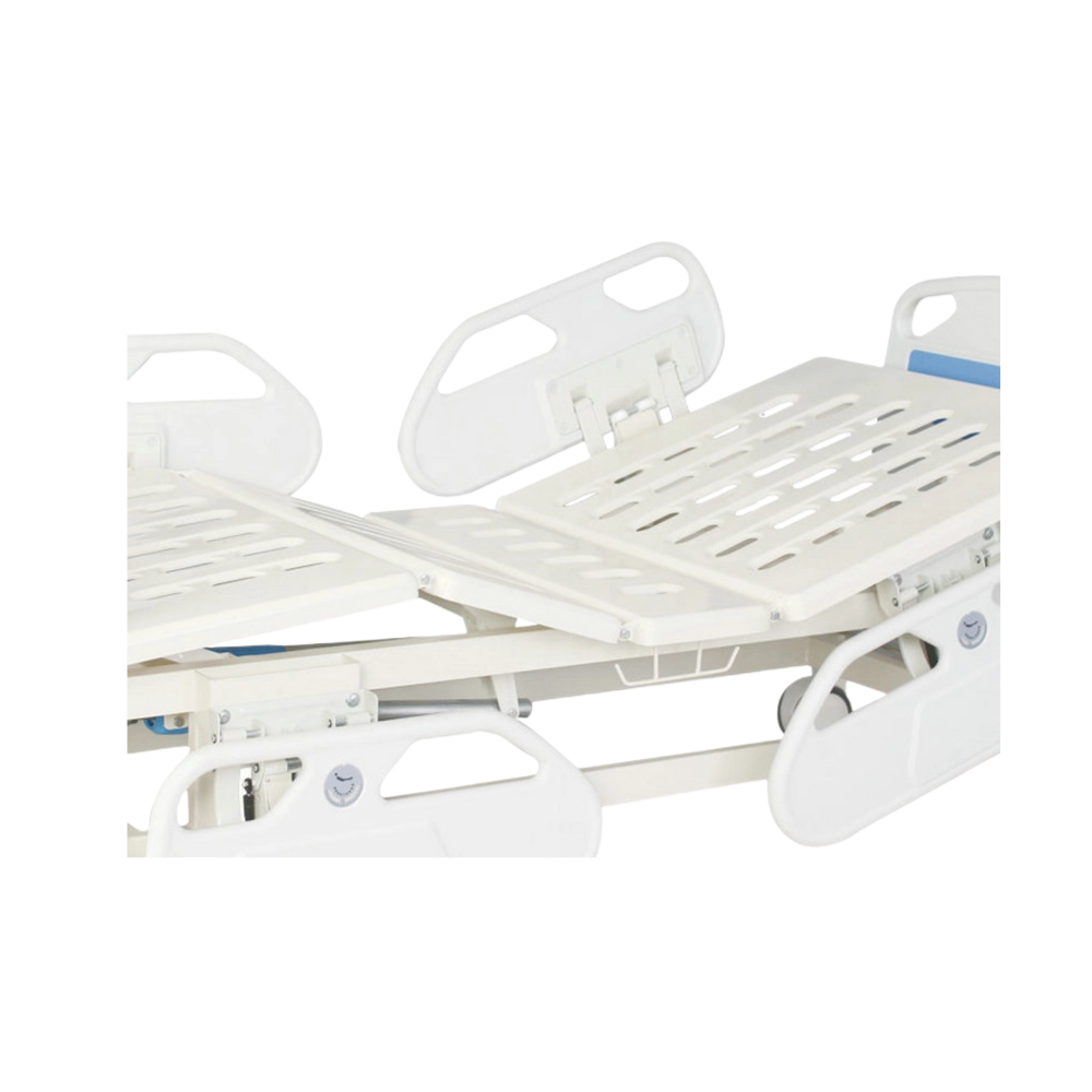 Three Crank Manual Hospital Bed MD-TMHB-1001 has an adjustable height of up to 700 mm with a whole elevation adjustment of 200 mm ± 20 mm. It has a maximum leg rest angle of 45° ± 5° and a backrest angle of 75° ± 5°. The cranks are retractable and include limited protection to ensure safe operation. Our manual hospital bed comes with detachable head and footboards, making it easy to clean and maintain.