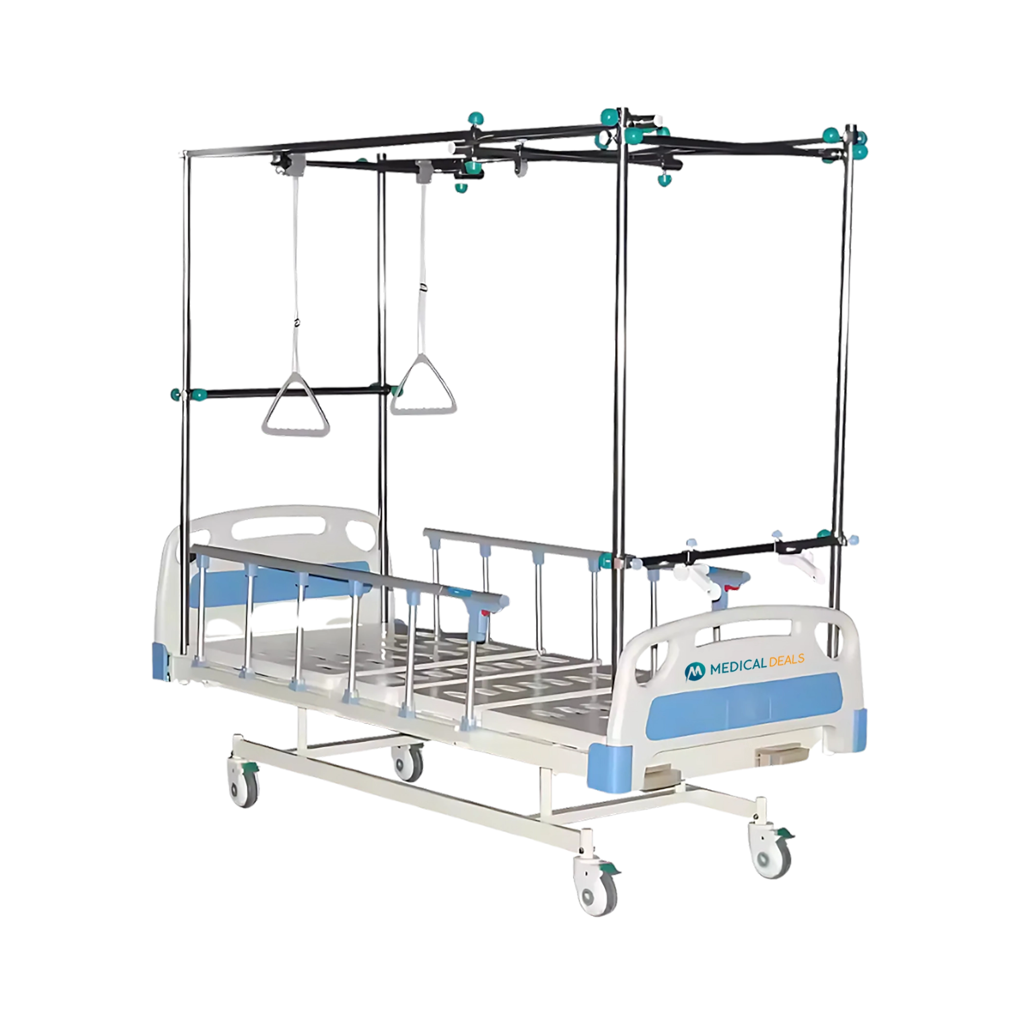 MedicalDeals Orthopedic Traction Bed are constructed with a sturdy steel frame, ensuring stability and durability under varying load conditions. They feature an adjustable traction system that allows for precise control of traction forces. The bed includes a segmented mattress base with a high-density foam mattress covered in a durable, easy-to-clean material. Their height and incline can be adjusted manually or electrically, depending on the model. The traction bed is designed with various attachment points for pulleys, ropes, and weights. Our Orthopedic Traction Bed are available in both manual and electric models.